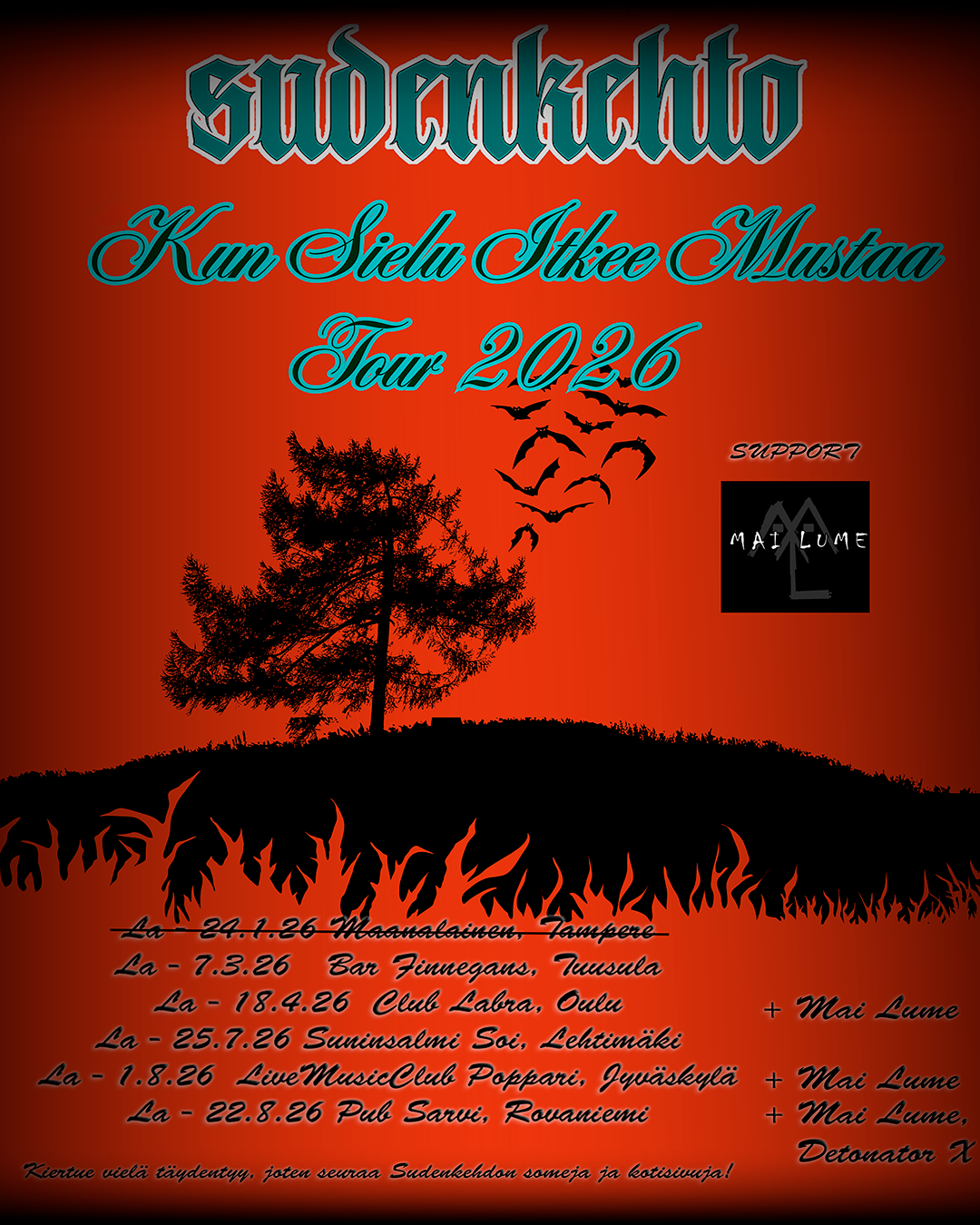 Sudenkehdon kiertue "Kun Sielu Itkee Mustaa" 2026!